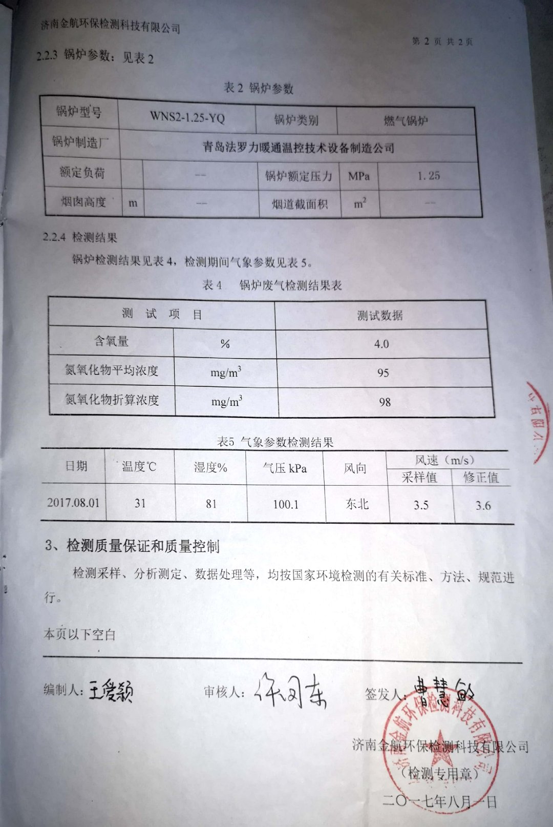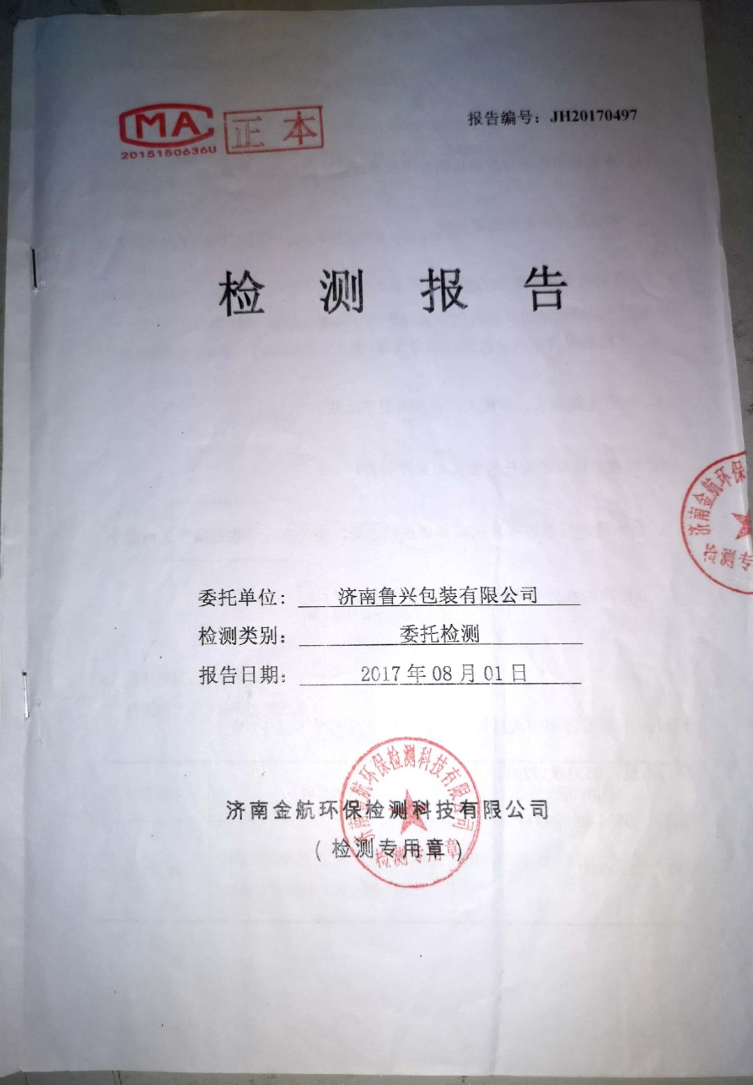 2017年8月環(huán)保檢測(cè)報(bào)告