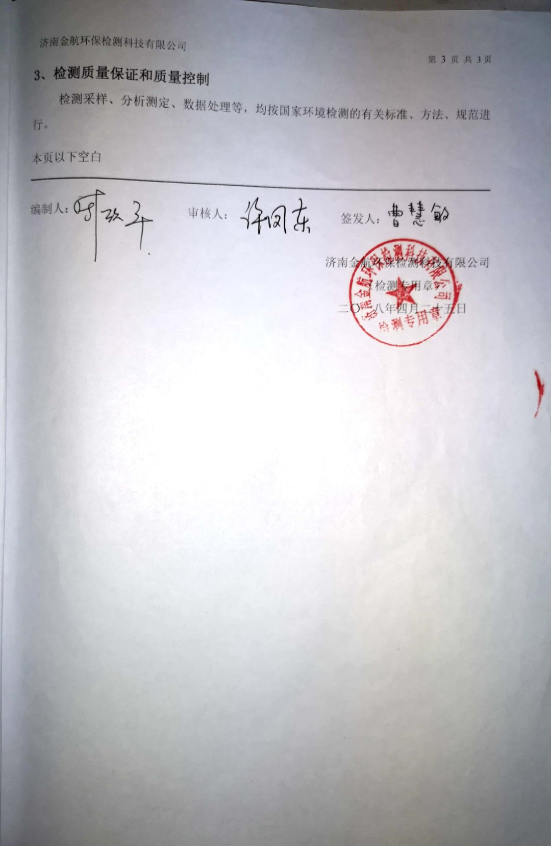 2018年4月環(huán)保檢測報告