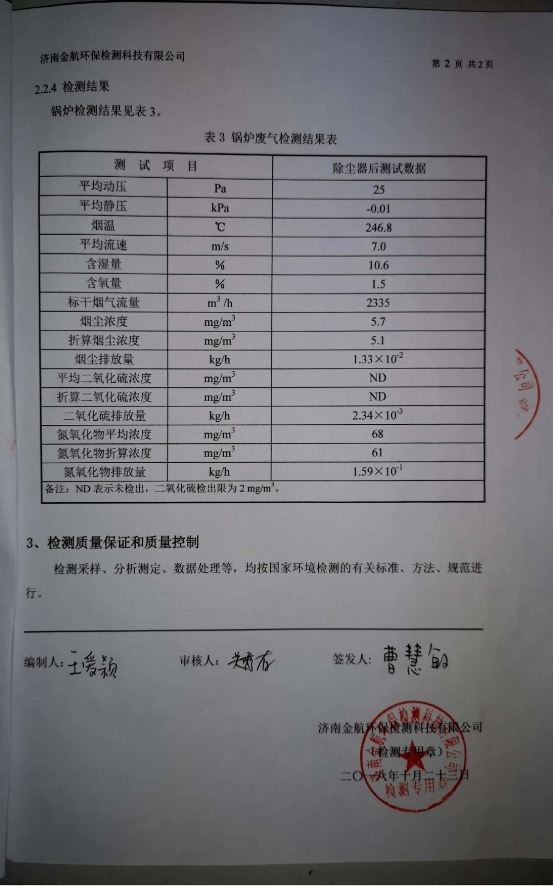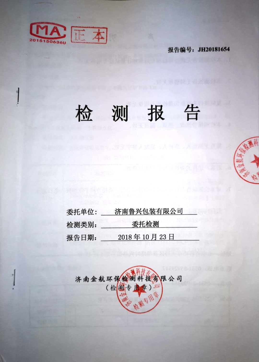 2018年10月環(huán)保檢測(cè)報(bào)告