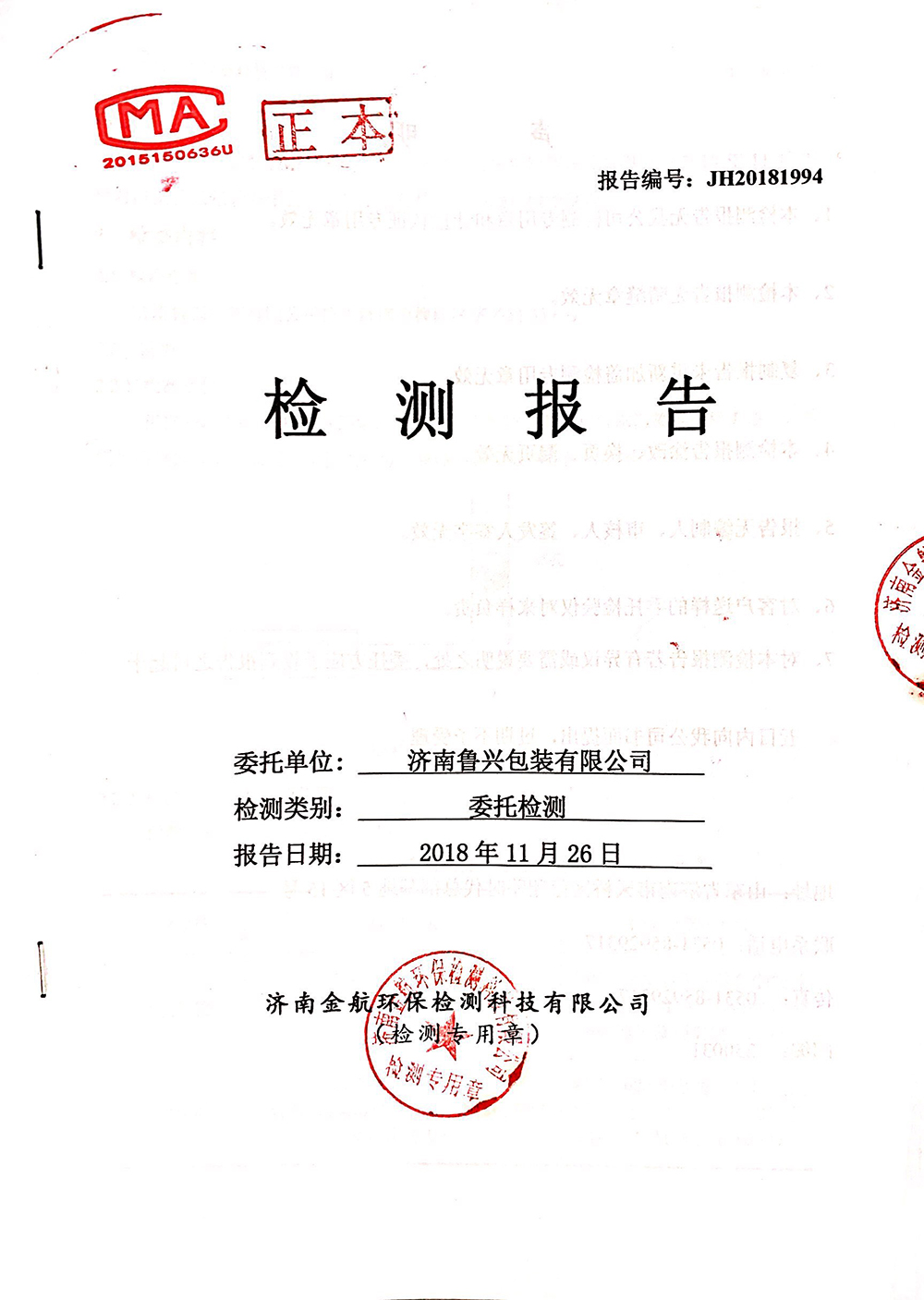 2018年11月環(huán)保檢測報告
