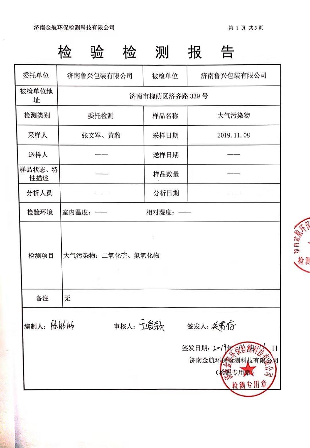 2019年11月環(huán)保檢測(cè)報(bào)告