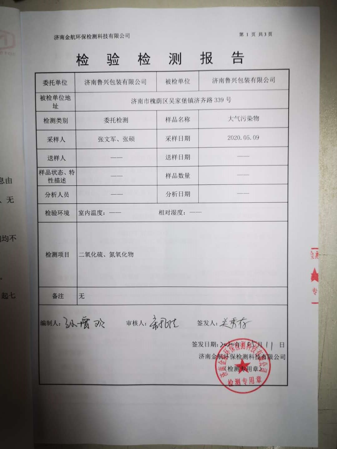 2020年5月環(huán)保檢測報告