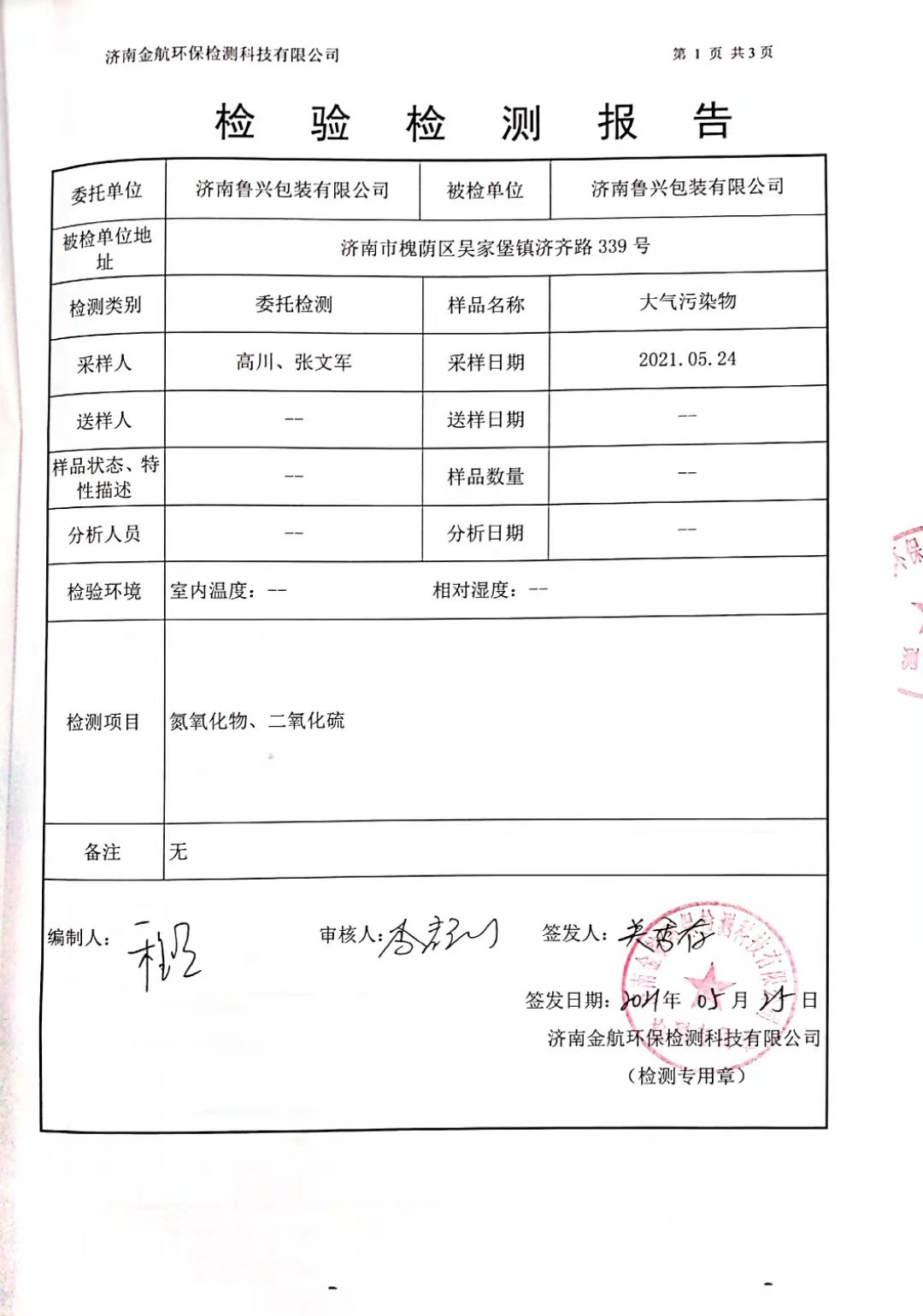 2021年3月環(huán)保檢測報告
