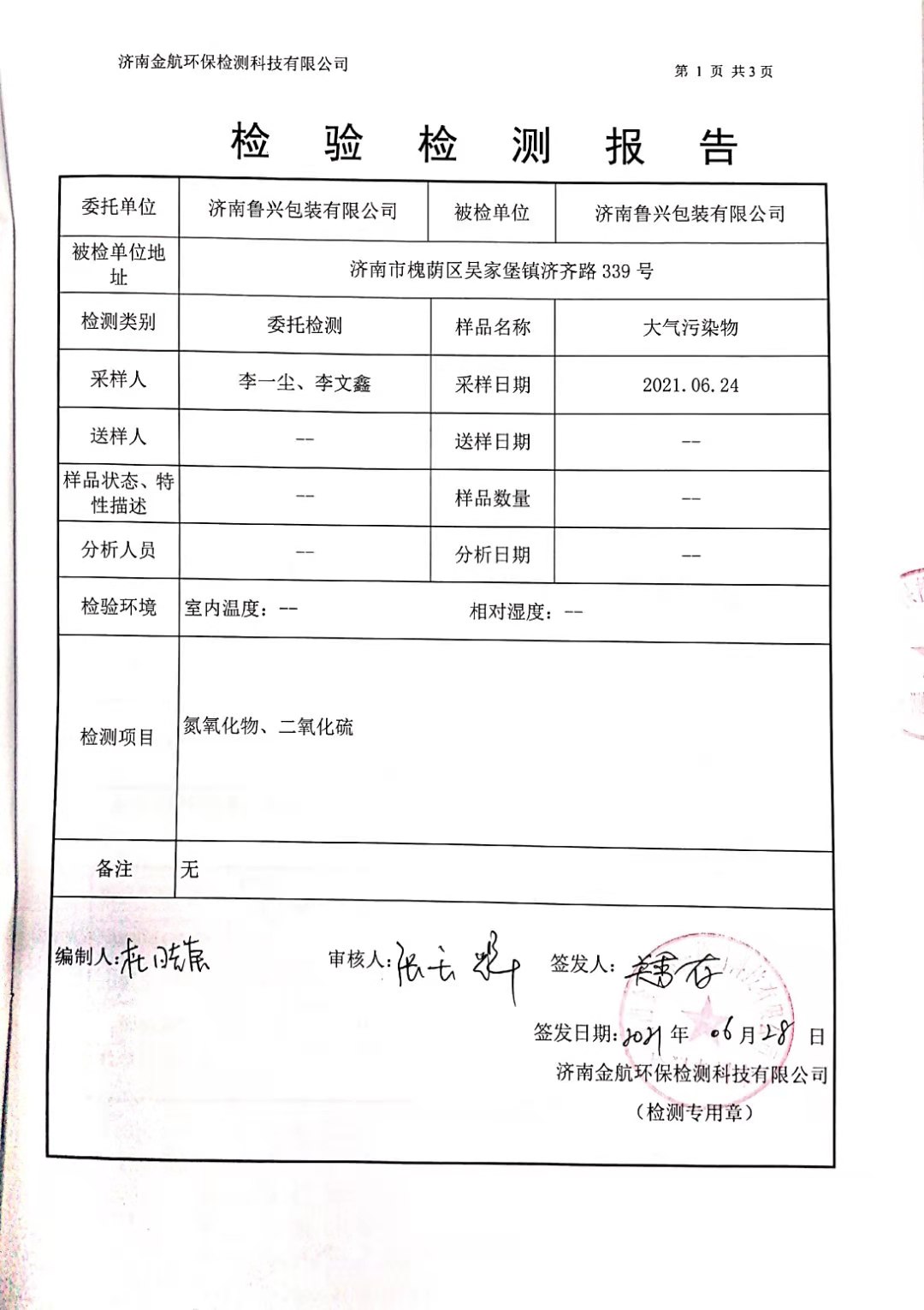 2021年六月環(huán)保檢測(cè)