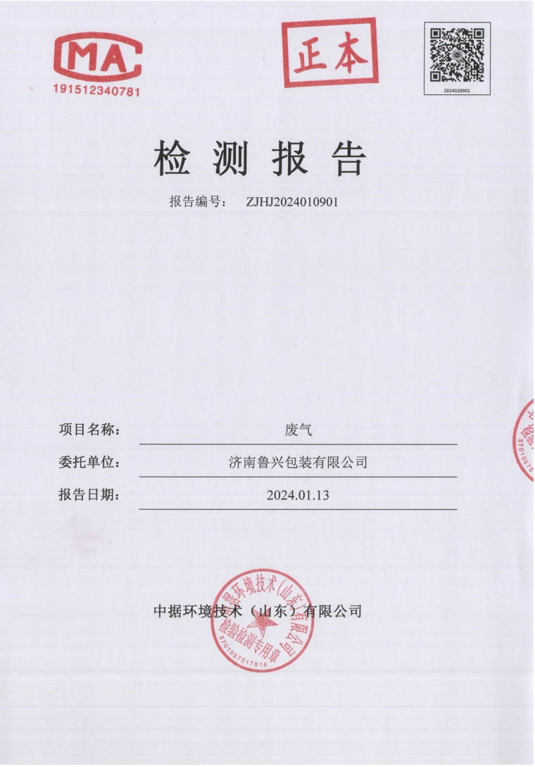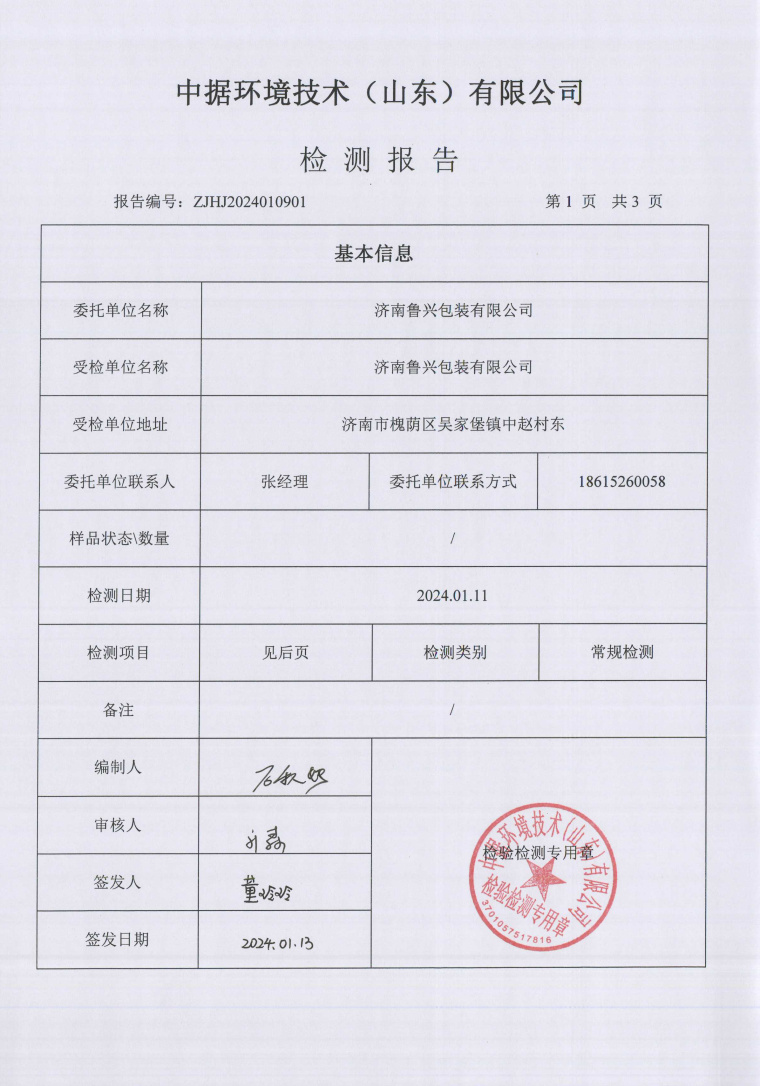 2024年1月魯興包裝檢測(cè)報(bào)告