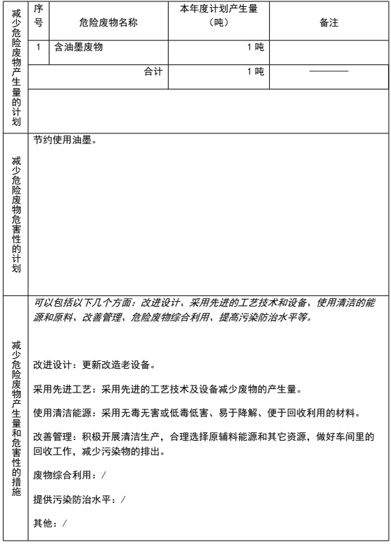 表 4 危險(xiǎn)廢物減量化計(jì)劃和措施