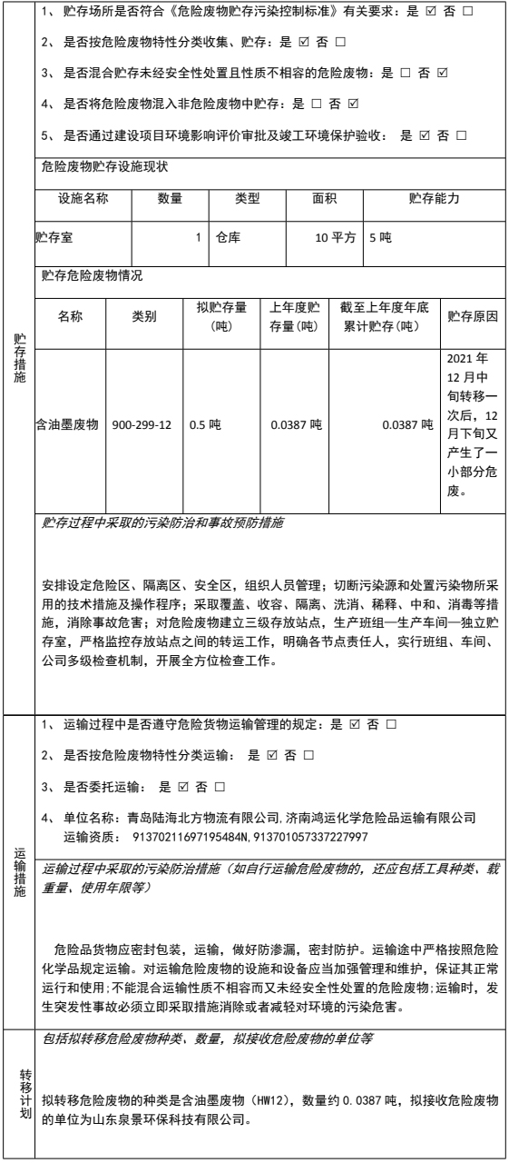 表 5 危險(xiǎn)廢物轉(zhuǎn)移情況