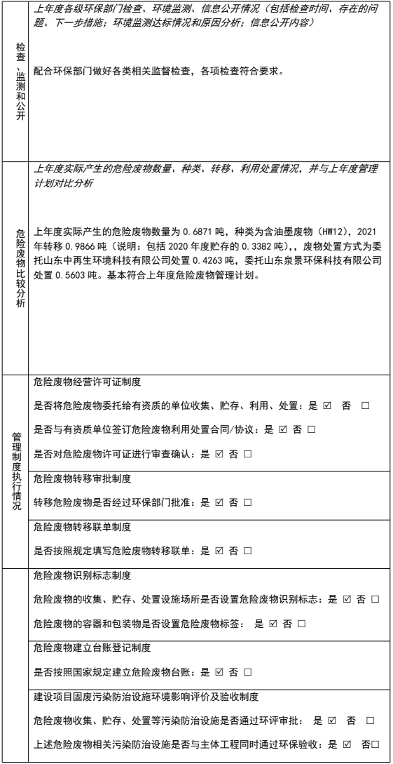 表 8 環(huán)境監(jiān)測情況