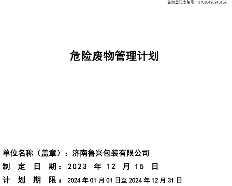 2023年危險(xiǎn)廢物管理計(jì)劃