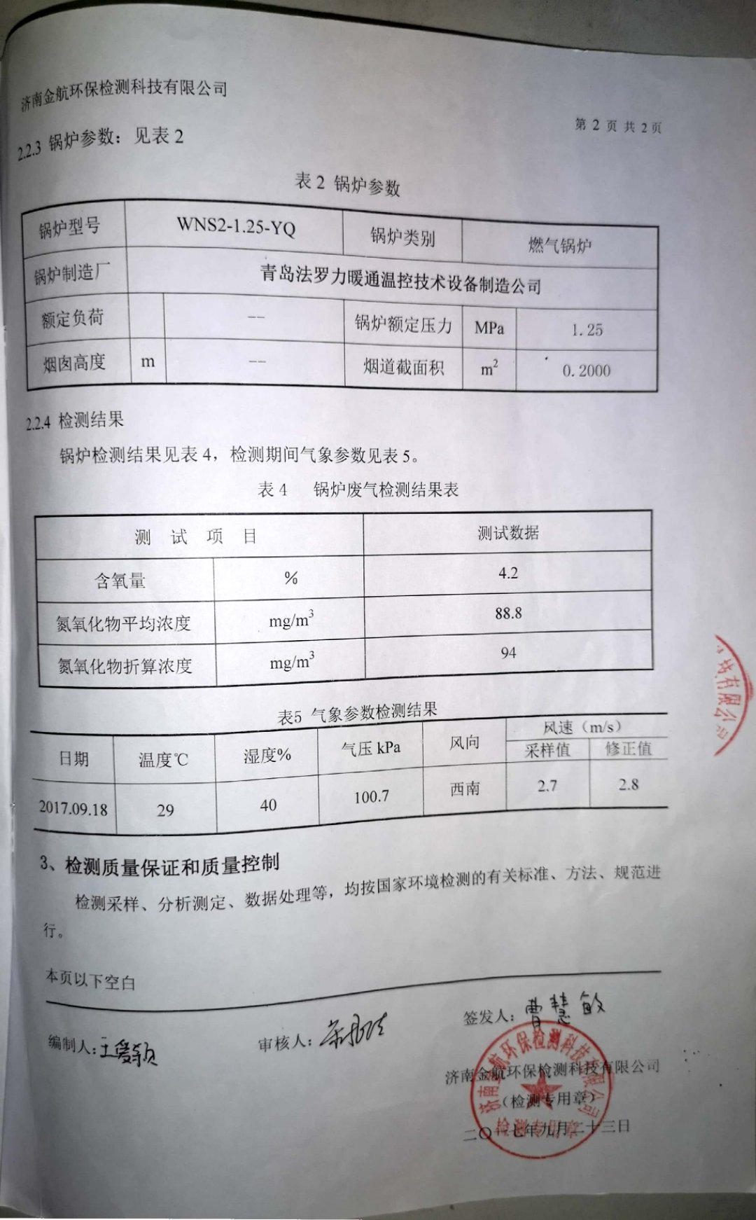 2017年9月環(huán)保檢測報(bào)告